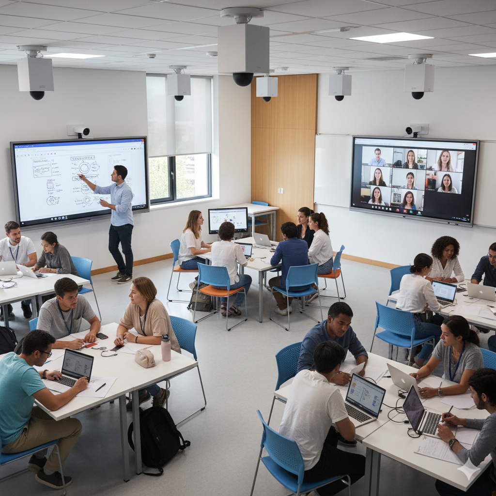 - Hybrid Learning: Instructors must engage students both physically present in the room and those joining remotely via video conferencing.